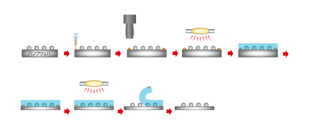 バンプウェハ向けに装置とUV樹脂を開発し、T.T.V.向上プロセスを提案